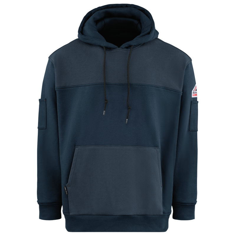 Aquí tienes una sudadera con capucha que te ayuda a afrontar la jornada laboral con seguridad y todo en orden. Incorpora el protector facial integrado HoodShield™ para protegerte del viento y el frío. Un acabado repelente al agua duradero te mantiene seco. Antebrazos reforzados que añaden durabilidad donde más la necesitas. Y un bolsillo extragrande para calentar las manos con un bolsillo interior oculto para guardar objetos de forma segura. En definitiva, la protección implacable que solo Bulwark te ofrece.